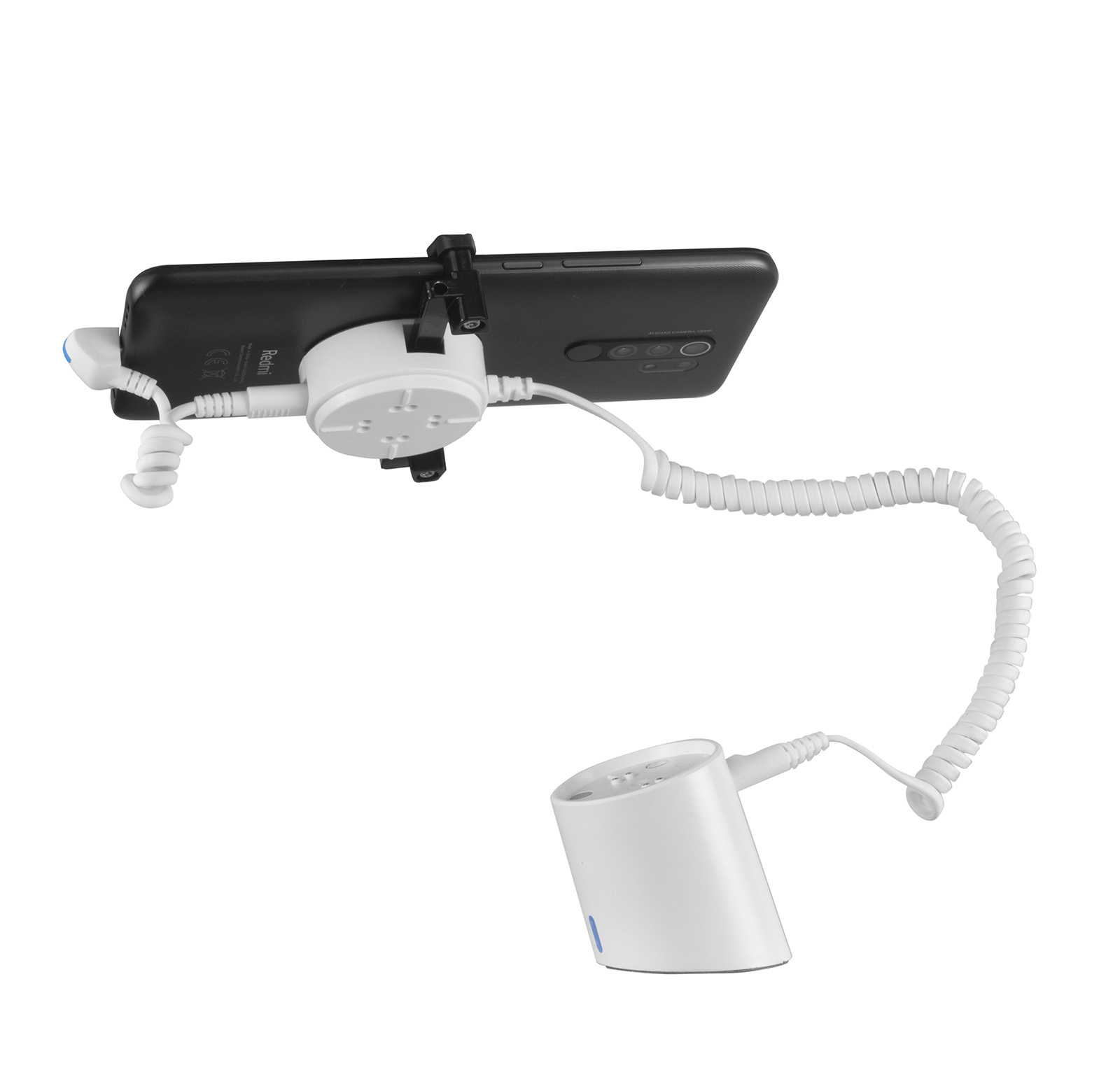 La operación del soporte TSCAPA485GA exhibidor antirrobo con alarma para proteger iPhone y smartphones contra robo es muy sencilla y práctica, la alarma sonará en cuánto el soporte se ha separado de la mesa o el Smartphone se ha separado del soporte o en caso de que alguien corte el cable o desconecté el cable de carga del smartphone