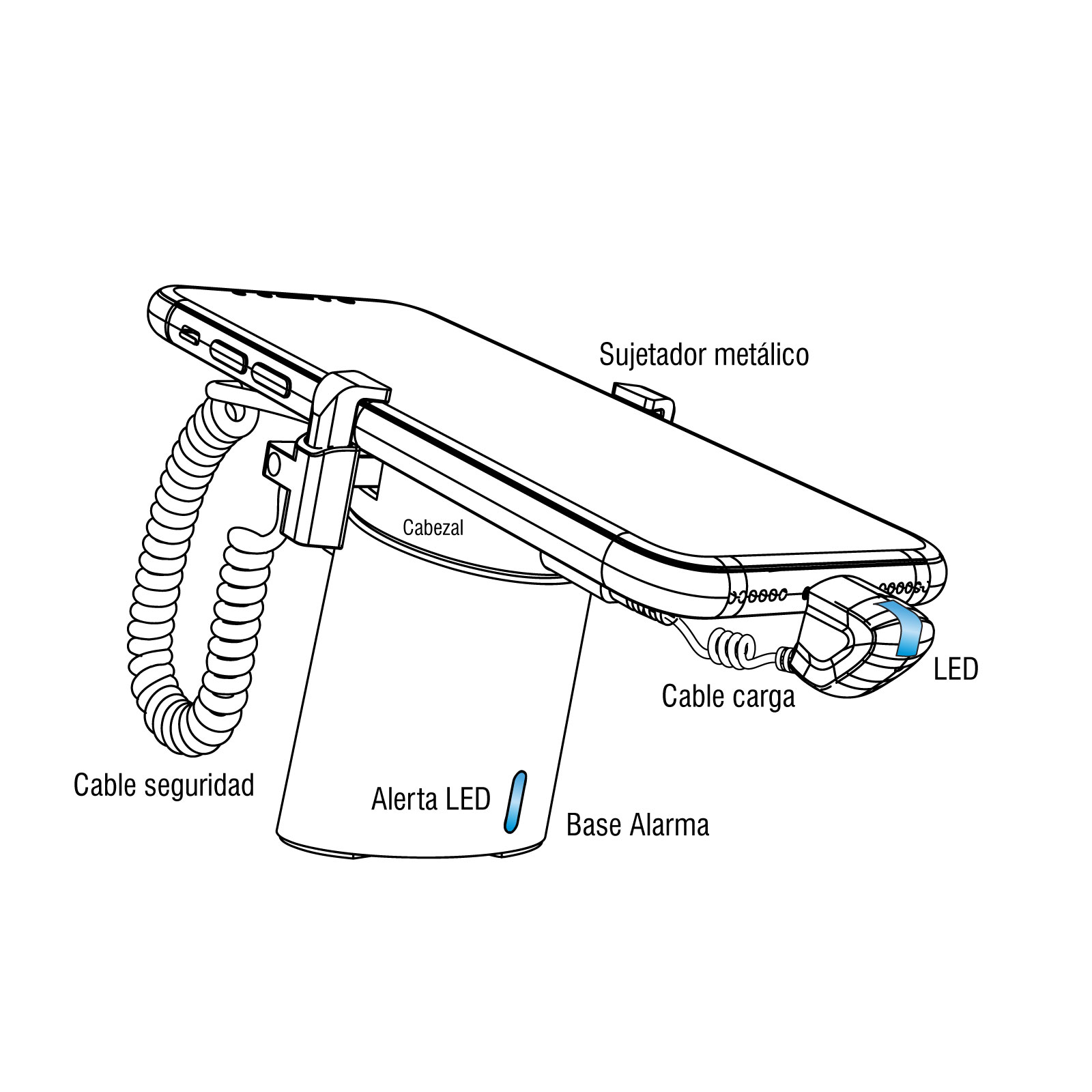 TSCAPA485GA exhibidor antirrobo con alarma para proteger iPhone y smartphones en mesas de experiencia