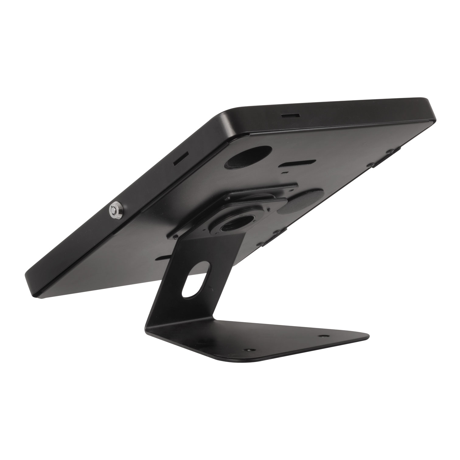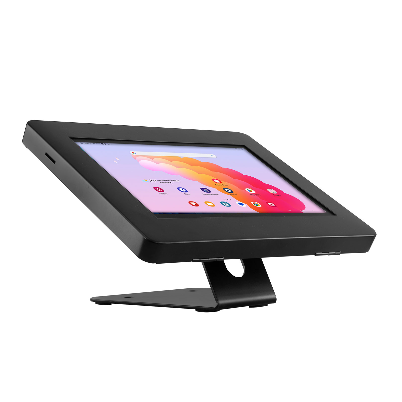 El soporte TSCLK13W02A9+ asegura con robustez tabletas Samsung Galaxy TAB A9+ 11″ en mesas, escritorios, barras , mesdas de trabajo, muros, mamparas, columnas y techos, adaptándose a diversos entornos verticales y horizontales. Fabricado en metal, ofrece seguridad antirrobo y permite girar la tableta según necesidad.