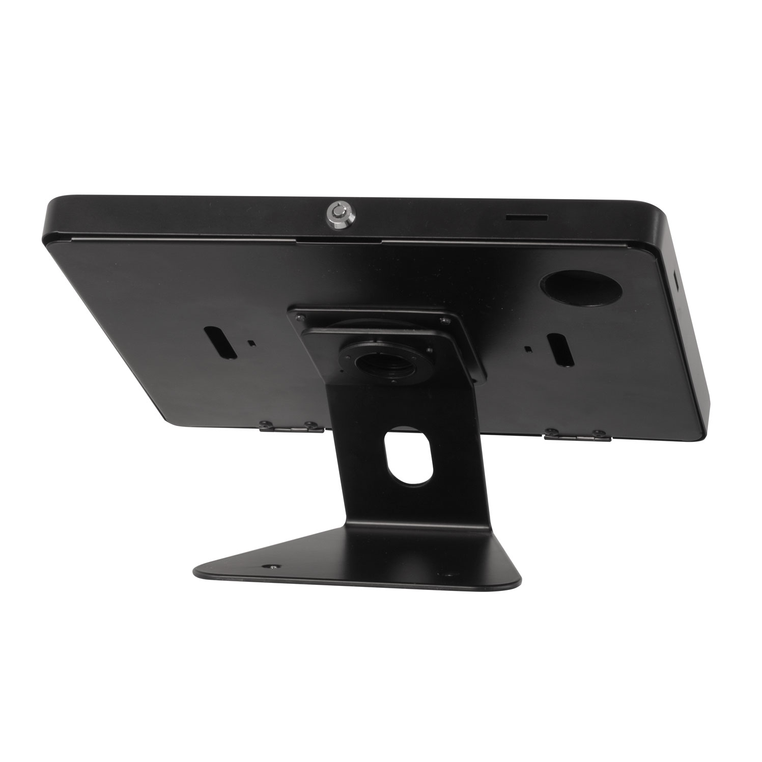 El sistema de rótula de acero previene el robo al facilitar el giro seguro de la tableta.