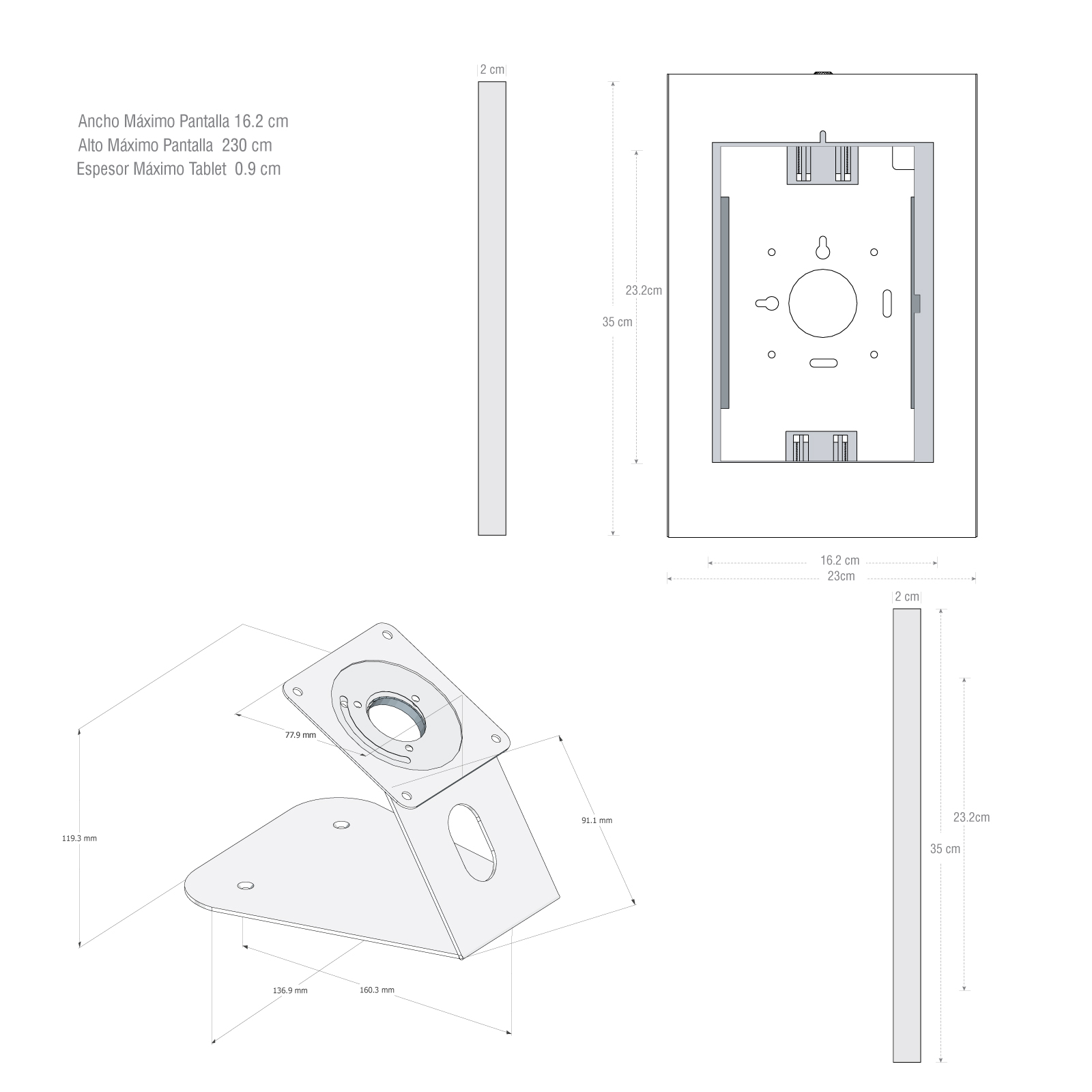 Este soporte no solo se limita a instalarse en paredes, sino que también puede montarse en vehículos, muebles, quioscos, mamparas y módulos de trabajo de oficina, ofreciendo una solución completa y versátil donde sea necesario.