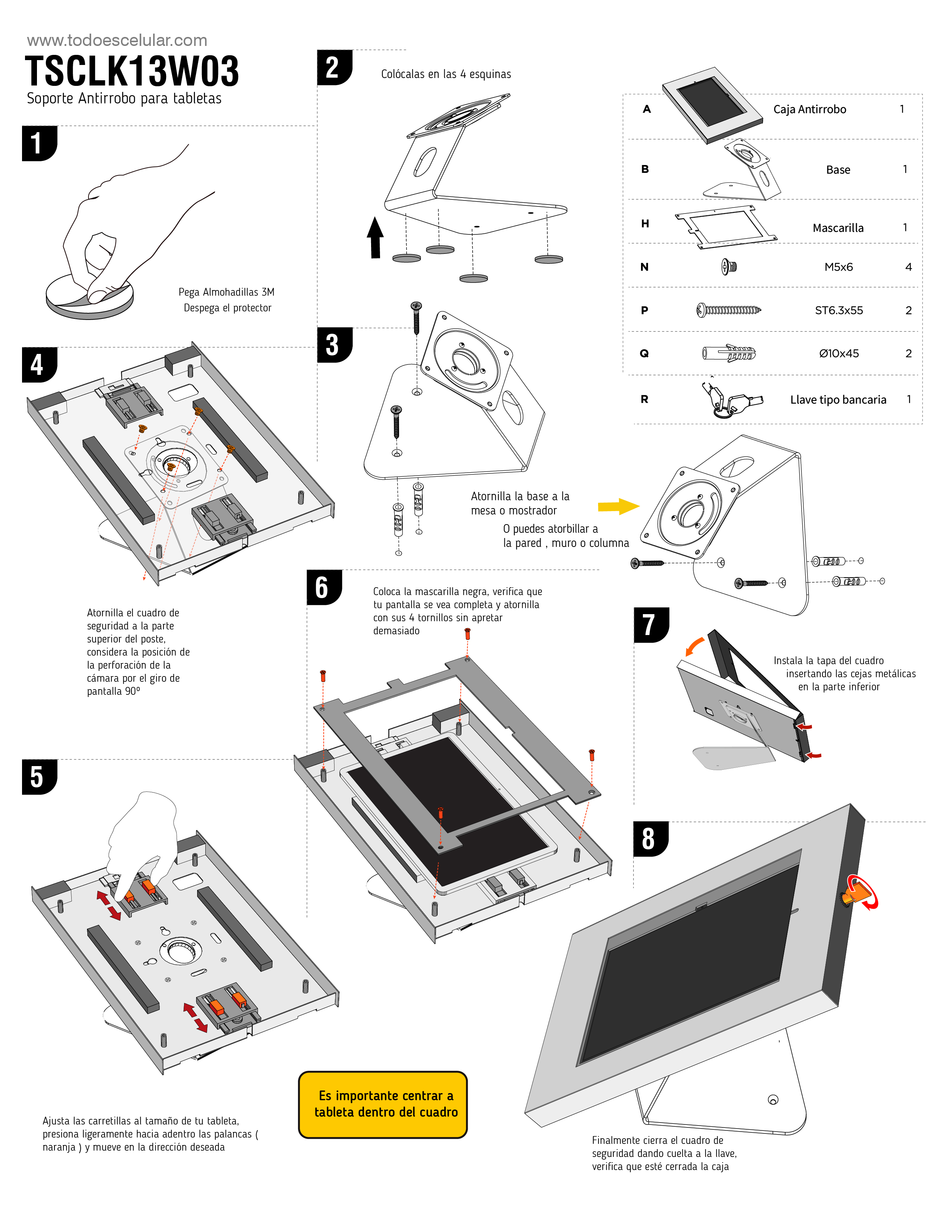 Con el TSCLK13W03W, puedes estar seguro de que tus tabletas estarán protegidas en todo momento, permitiéndote exhibir contenido multimedia o presentar catálogos virtuales con total tranquilidad.