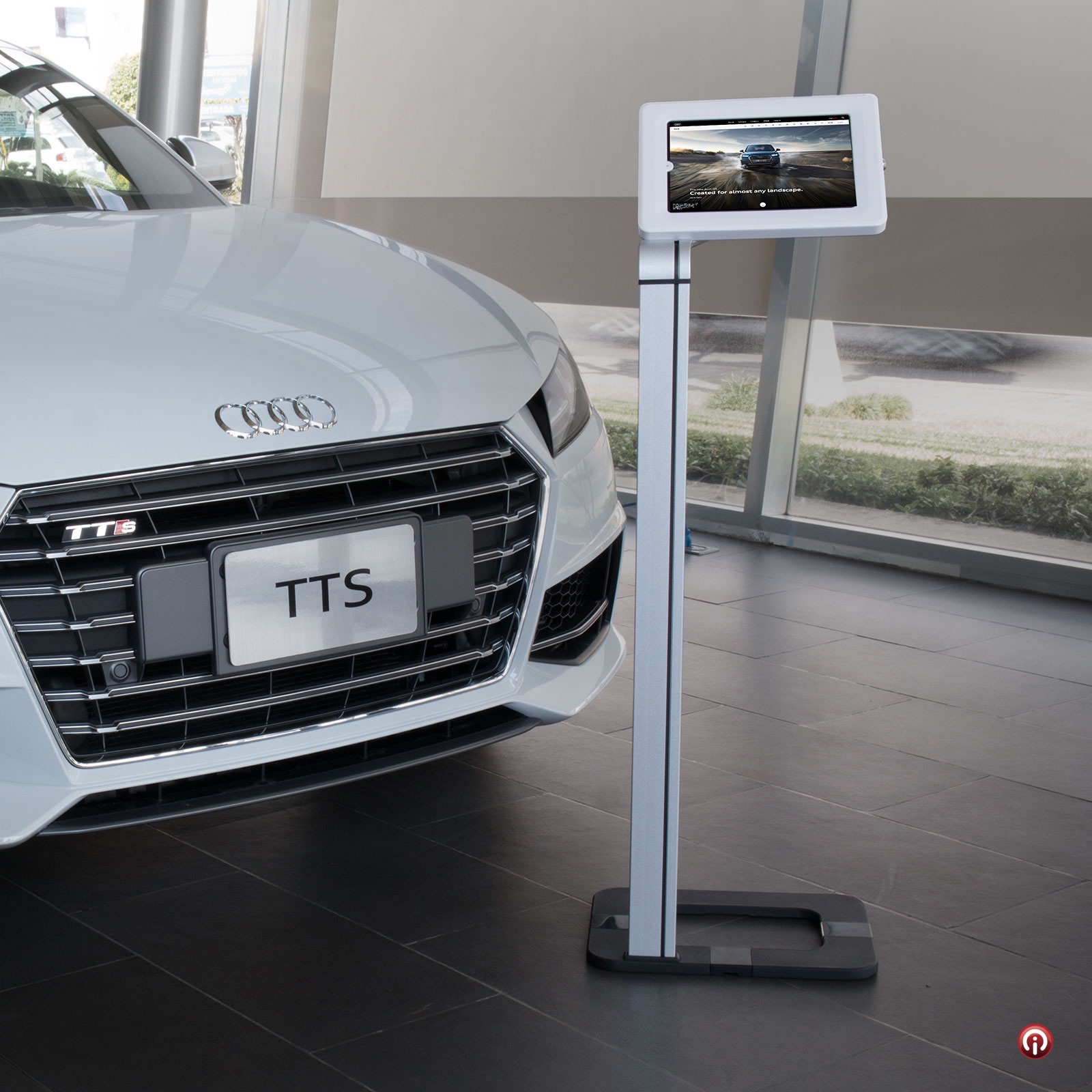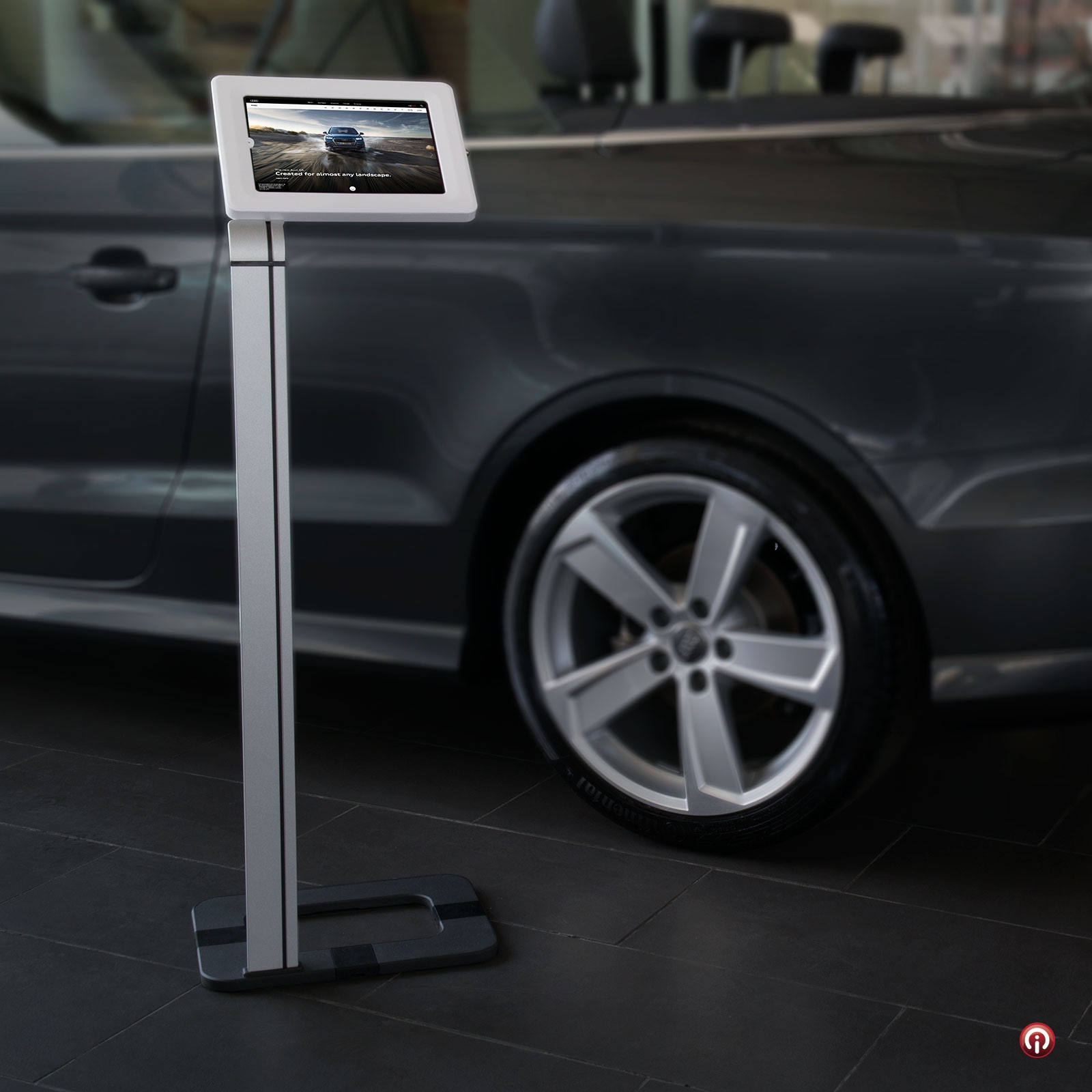 Atrio para proteger contra hurto de manera efectiva tu tableta en espacios públicos o privados, se puede instalar al piso en hoteles, restaurantes, bares, salones de conferencias, salas de juntas y escenarios. Ideal para oradores, músicos, hostess, cantantes.