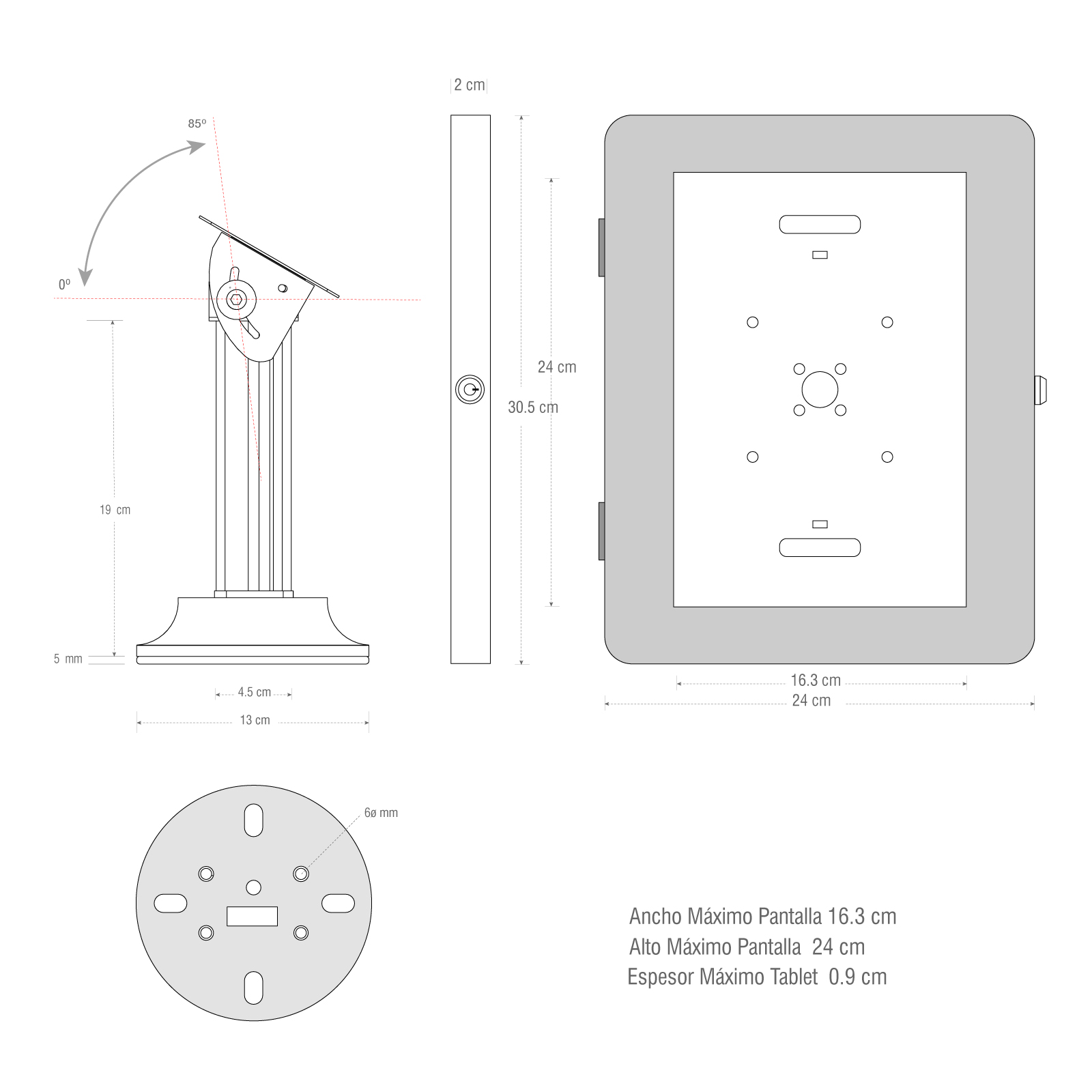 Además de su función antirrobo, esta base también ofrece comodidad y practicidad. Su diseño permite una visualización óptima, protegiendo los puertos y botones de la tableta. Ya sea para uso industrial, institucional o comercial, esta base metálica mejora la experiencia de uso y la seguridad de tu dispositivo.