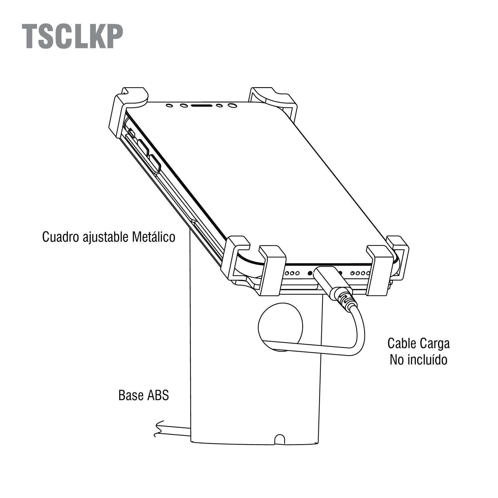 TSCLKP soporte base de alta seguridad para proteger iPhone y smartphones contra robo exhibidor no permite que el equipo se ha levantado por lo cual es ideal para situaciones de muy poca supervisión al contrario de los soportes con alarma que requieren vigilancia constante. Características