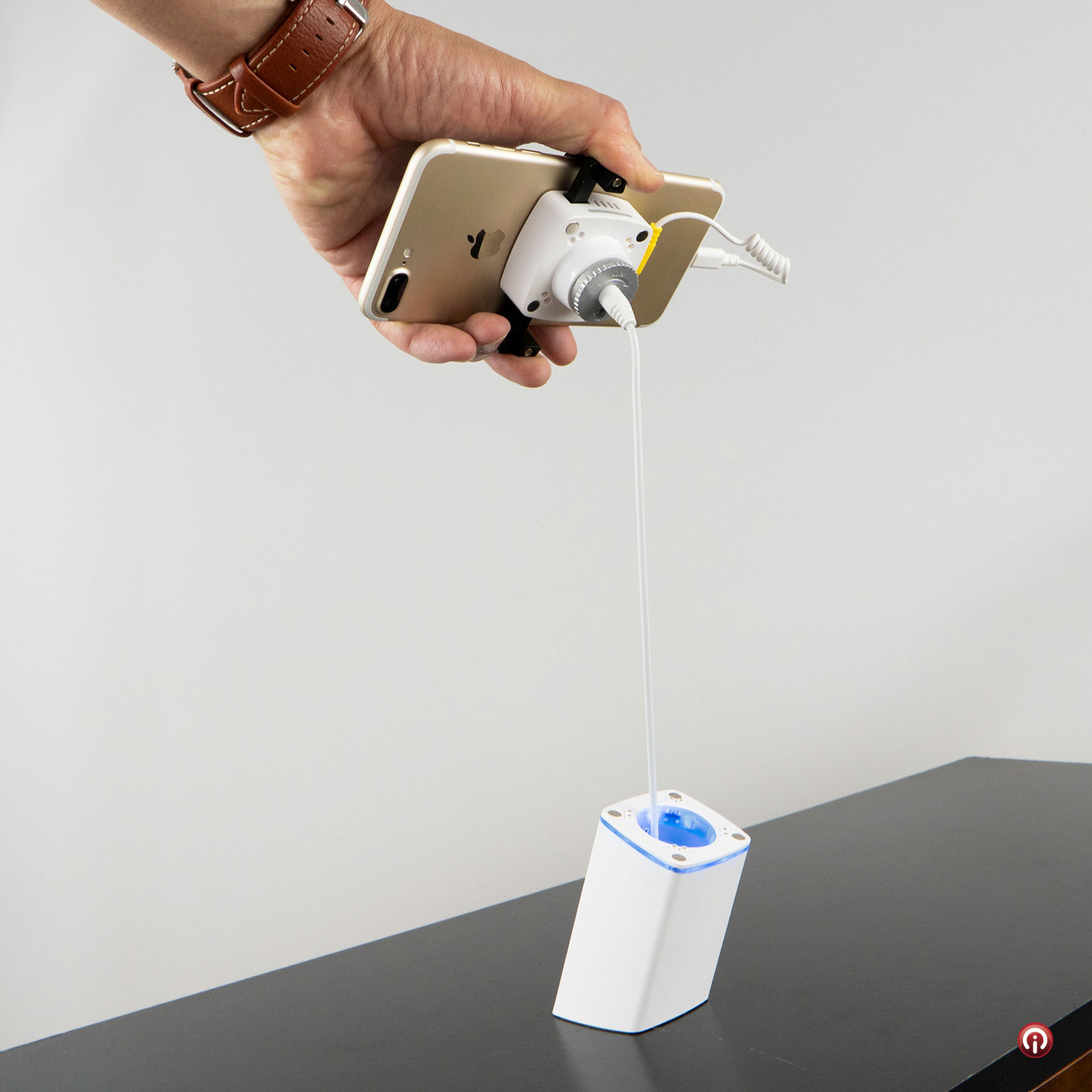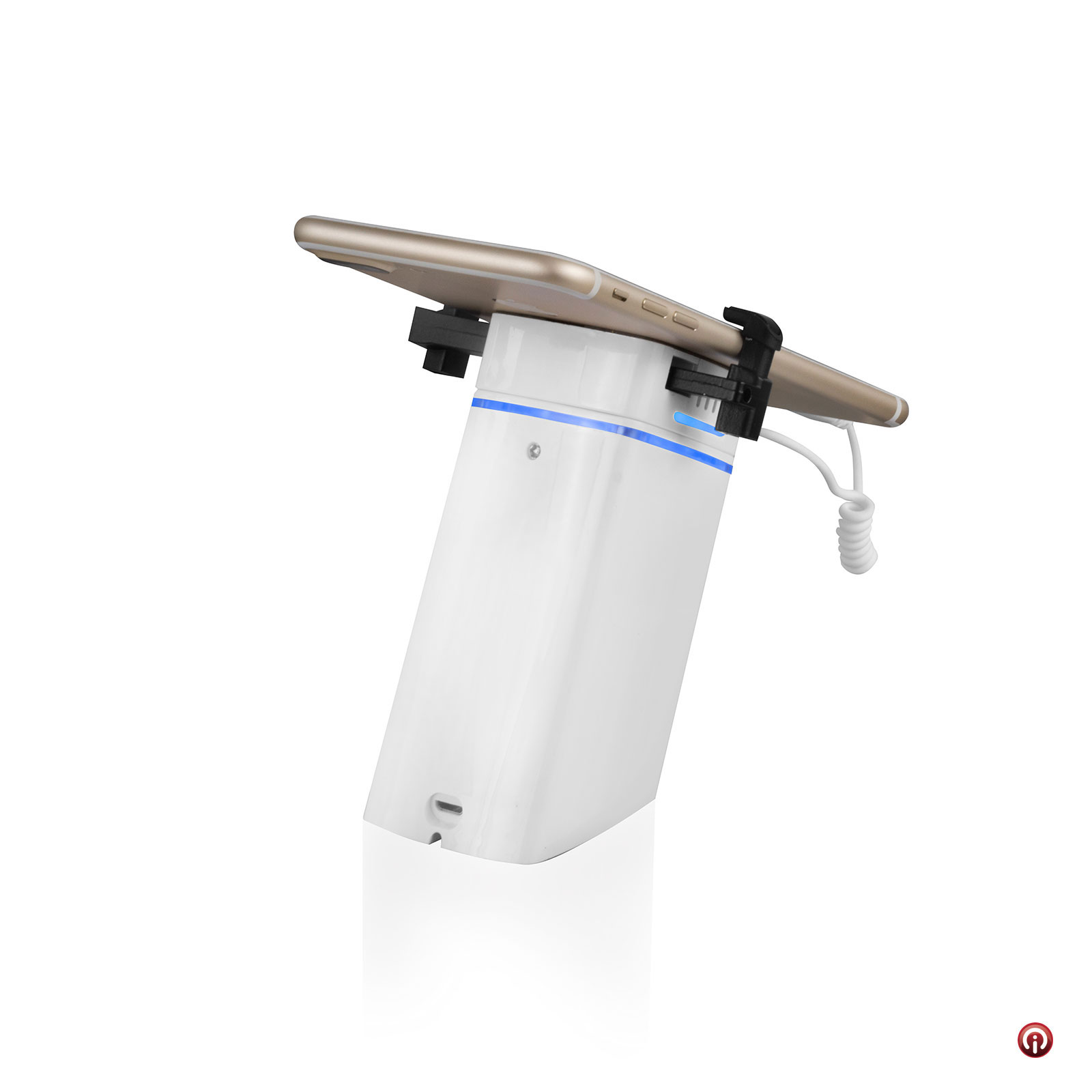 Aumenta tus ventas con esta solución para poner a disposición del público en mostradores de venta y mesas de experiencia tus equipos de manera firme y siempre protegidos contra robo gracias a su sistema de alarma activado por actuadores con control remoto
